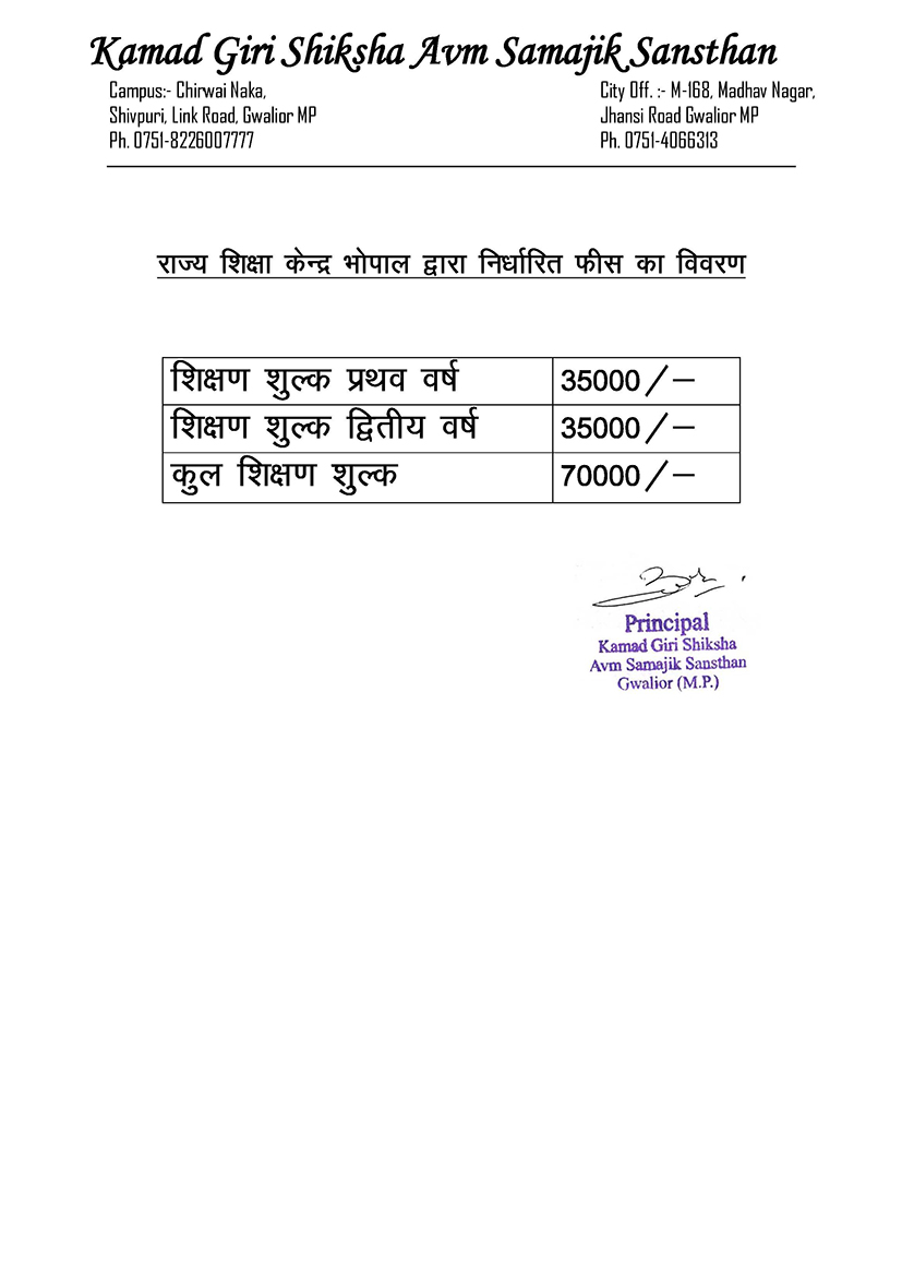 Phone : +91-751-2630510, 2423840 Fax : +91-751-4066313 email : kssscollege@gmail.com