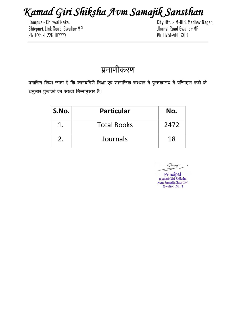 Phone : +91-751-2630510, 2423840 Fax : +91-751-4066313 email : kssscollege@gmail.com